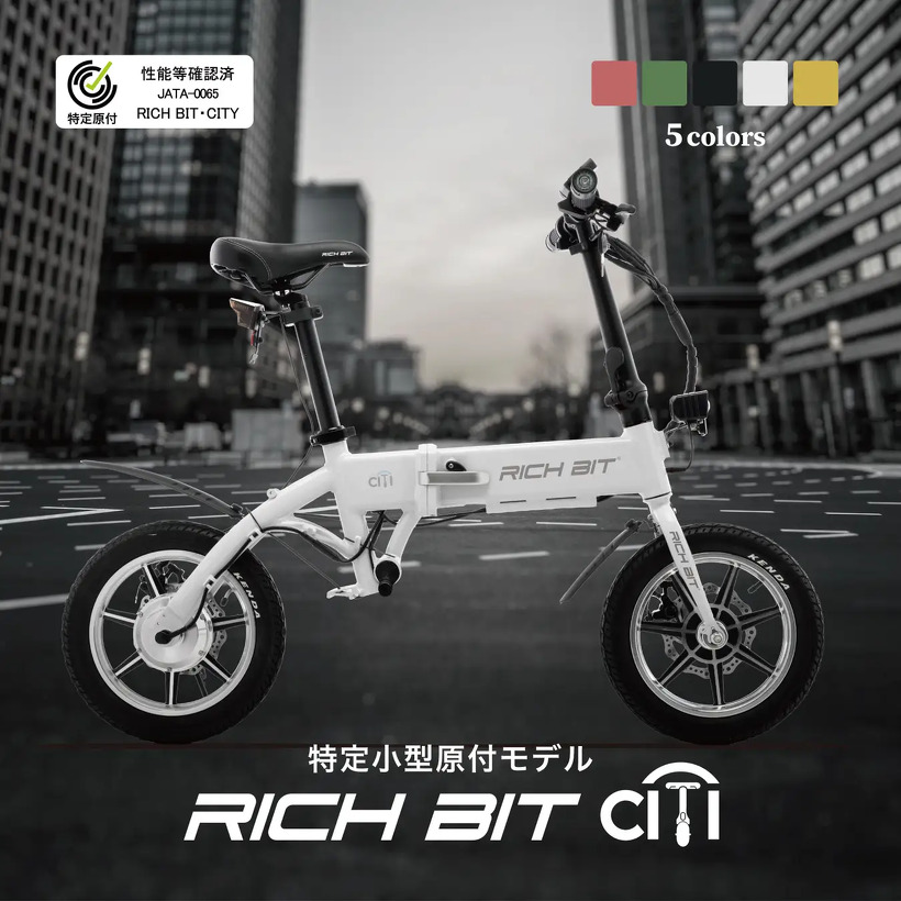 RICHBIT CITYは、2023年7月1日の改正道路交通法の施工により新設された「特定小型原動付自転車」区分で自転車型の新しい電動モビリティです。国土交通省の性能等確認制度にて適合認定(JATA-0065)を受けており、公道走行に必要な保安基準をすべて満たしております。小売販売価格は139,800円(税込)になります。
