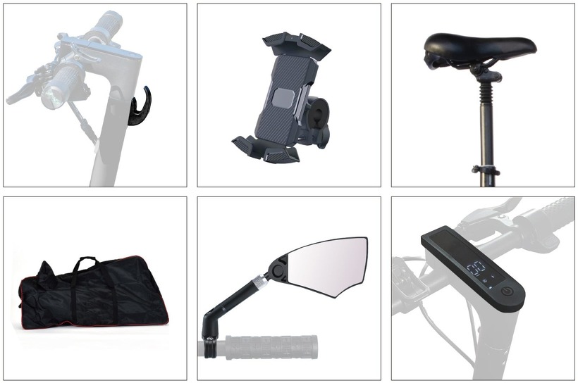 ※コンビニフック、スマホホルダー、専用サドル、収納バッグ、ミラー(右)、メーターカバー等