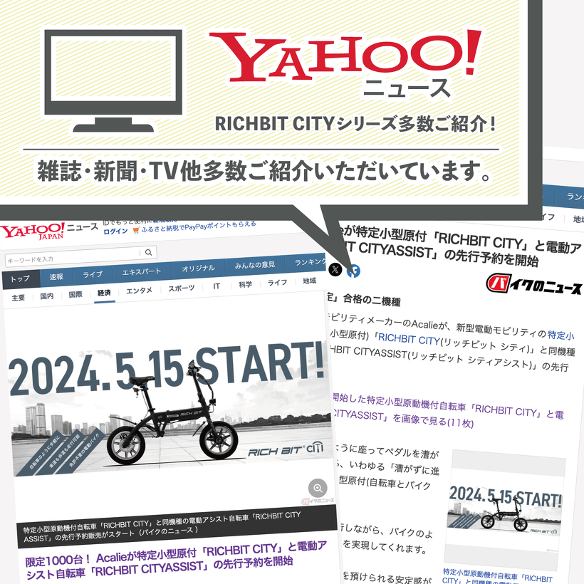 各種メディアにて多数掲載!特定小型原付&電動アシスト自転車 RICHBIT CITYシリーズが今話題です。